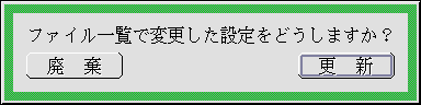 † ファイル一覧ウィンドウを閉じる際に、内容が変更されていた場合は、以下のパネルがあらわれます。通常は[更新]スイッチをクリックします。