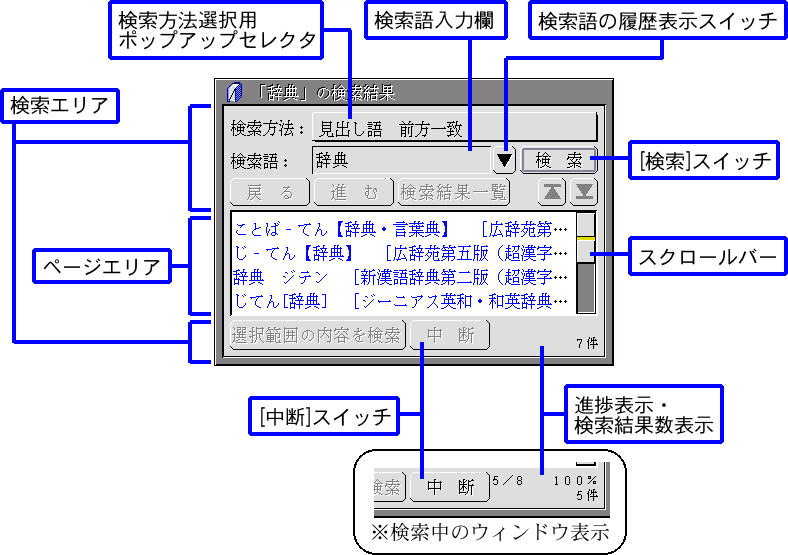 HOME > 製品一覧 > 超漢字統合辞書 > 取扱説明書 > 画面の説明