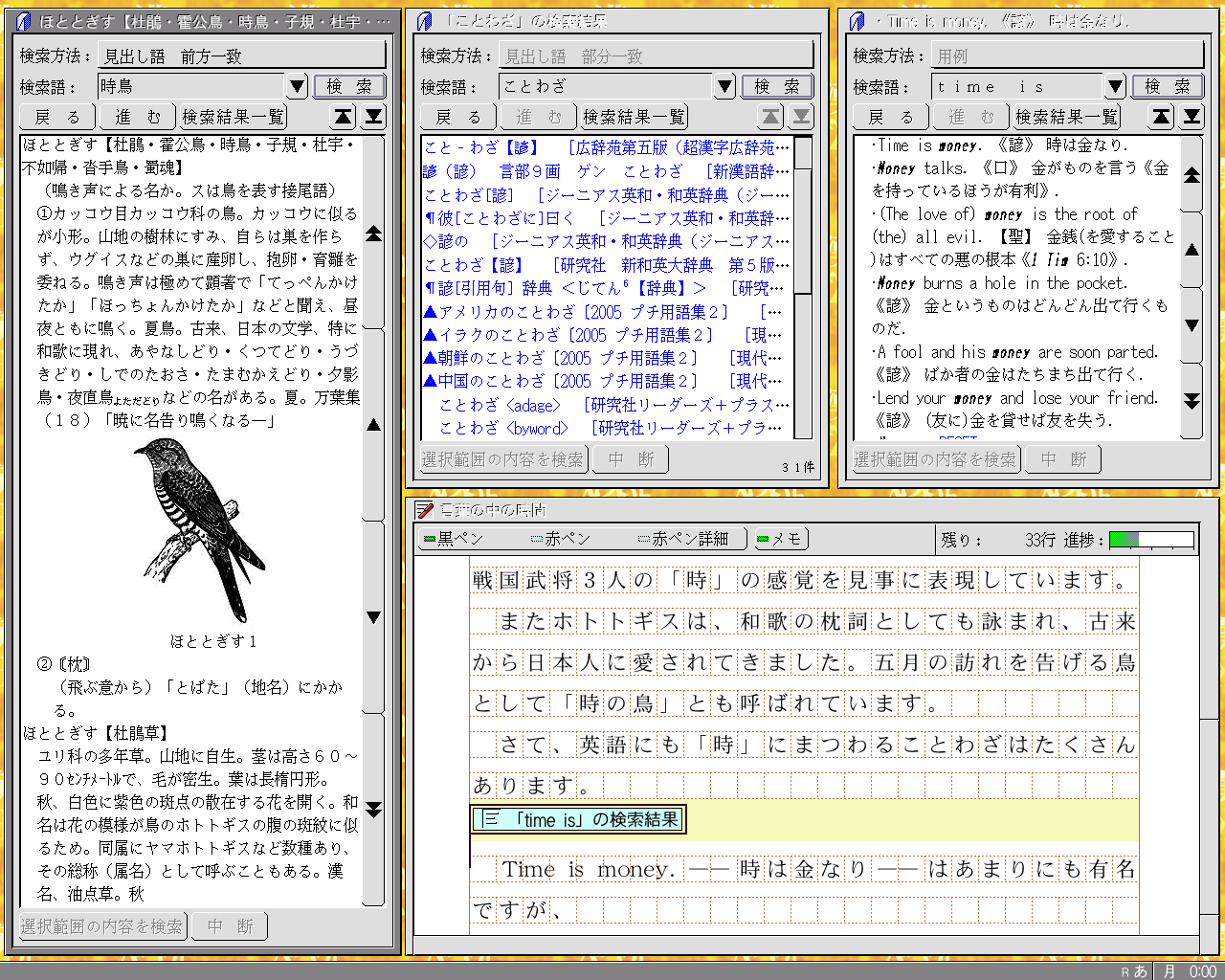 「超漢字統合辞書」で辞書を引きながら、