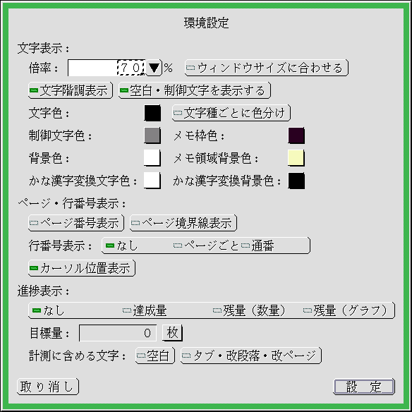 超漢字原稿プロセッサでは、快適な執筆環境のために画面表示の設定を変更できます。