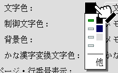 いちばん下の"他"を選択すると、色設定パネル(色設定パネル)が現れ、自由に色を設定できます。