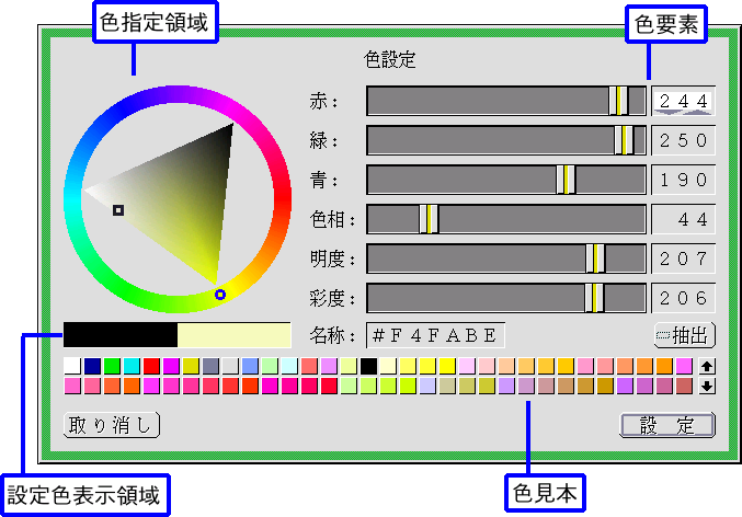 HOME > 製品一覧 > 超漢字原稿プロセッサ2 > 取扱説明書 > 色設定パネル