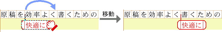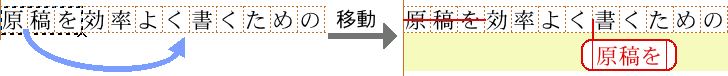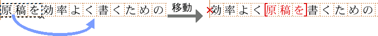 - 赤ペン詳細モードで文字列を選択し、ドラッグで移動します。"原稿を"を選択し、"効率よく"と"書くための"の間に移動します。