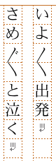 くり返し符号の「くの字点(おおがえし)」は、2マスを使って表示します。