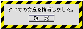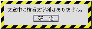 本文に検索文字列が含まれていない場合、下のパネルが現れます。[確認]をクリックしてパネルを閉じます。