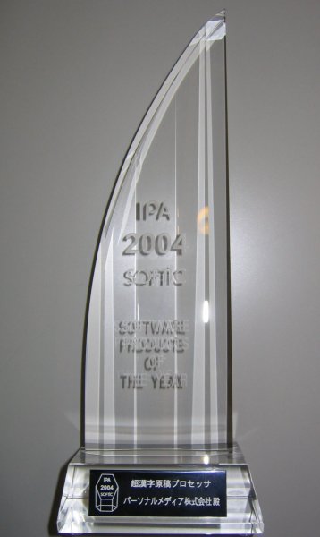 HOME > 製品一覧 > 超漢字原稿プロセッサ2 > 「ソフトウェア・プロダクト・オブ・ザ・イヤー2004」受賞