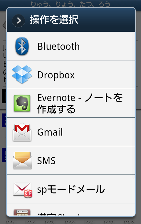 超漢字検索で見つけた文字は、簡単な操作で他のアプリケーションと共有することができます。