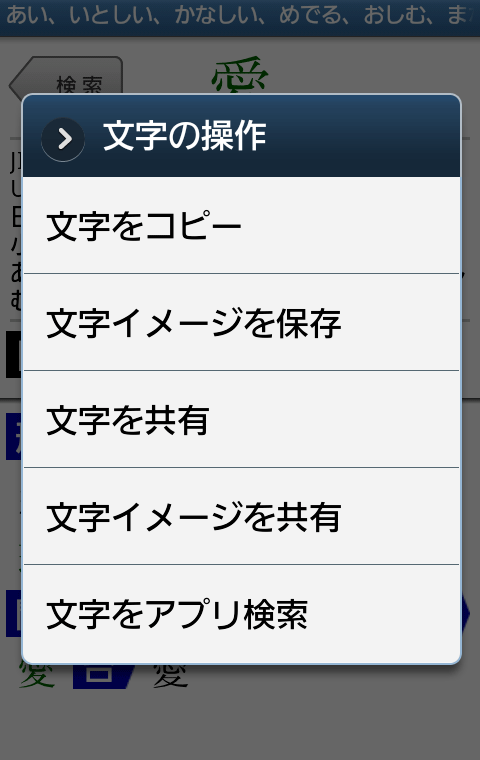 - 検索した文字は、文字や画像として他のアプリケーションと共有できます。