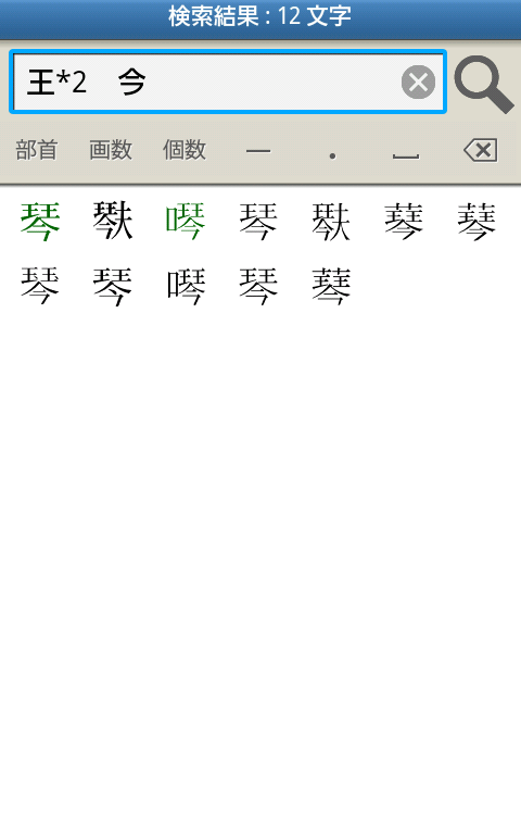 - 同じ構成部品を複数指定する掛け算検索や、構成部品の引き算検索を使って、難しい漢字も簡単に検索できます。