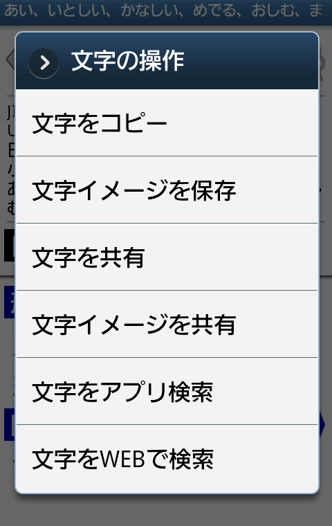 - 検索した文字は、文字や画像として他のアプリケーションと共有できます。