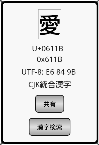 グリッドをタップすると、そのコードポイントに対する以下の詳細情報がダイアログで表示されます。