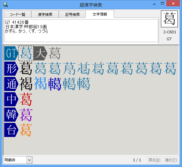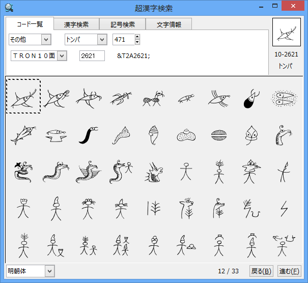 - 人名地名の異体字からトンパ文字まで、 18万字以上の文字を検索できます。