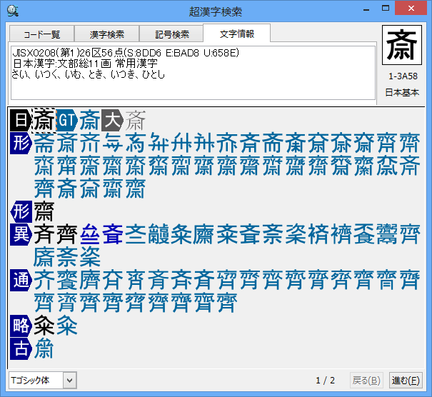 - 常用漢字、教育漢字、人名用漢字、表外漢字字体表の字体を簡単に確認できます。
