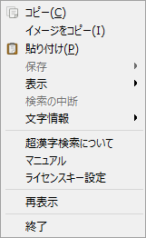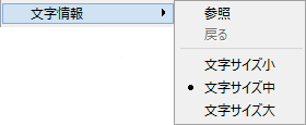 マウスポインタを文字一覧エリア、または文字表示エリアに持っていき、右クリックするとメニューが現れます。