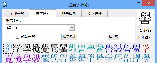 超漢字検索の特徴的な機能を紹介します。「入門編:(2)漢字を検索してみよう」の機能と組み合わせて使用してみましょう。