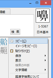 嚊という文字を探して、ワードパッドなどのアプリケーションに貼り付けてみましょう。