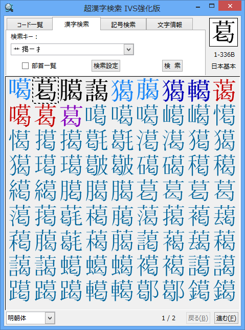 - 「超漢字検索 IVS強化版」の漢字検索画面