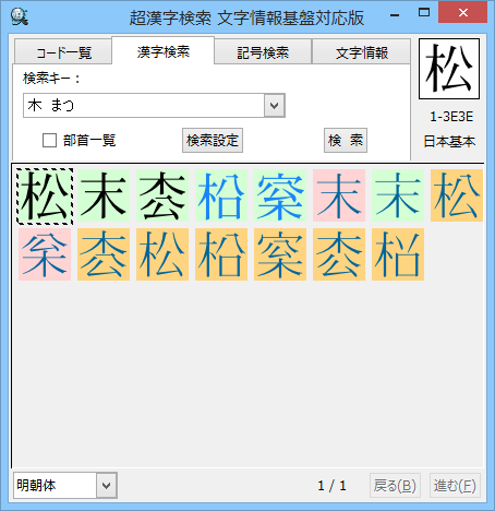 - 「超漢字検索 文字情報基盤対応版」で「松」の異体字を検索