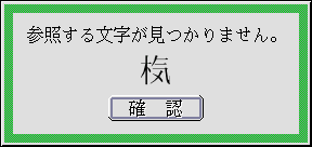 - 選択した文字も、その関連字も康煕字典に含まれていないときは、次のパネルが現れます。[確認]スイッチをクリックして、パネルを閉じます。