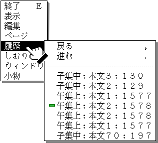 † 履歴には、ページ位置の他、表示倍率、表示位置の情報も保存されます。