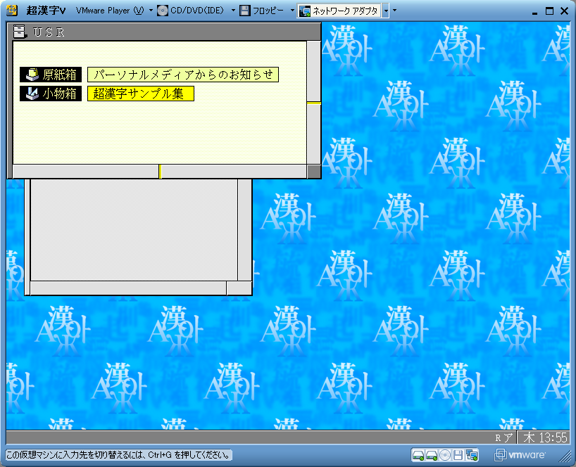 以上で、Virtual PCのバーチャルハードディスクの内容をVMware仮想ディスクに変換し、超漢字Vで利用できるように変換しました。