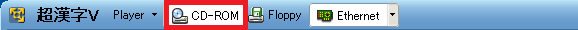- VMware Playerのツールバーにある[CD-ROM]と書かれたスイッチをクリックします。