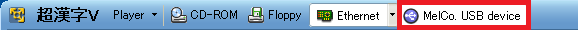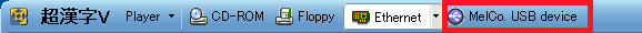 - VMware Playerのツールバーにある[USB device](USB機器により名称は異なります)と書かれたスイッチをクリックします。