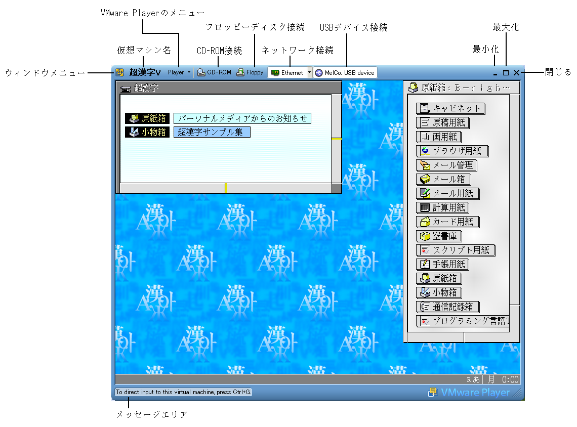 VMware Playerから超漢字Vに対して各種操作を行います。