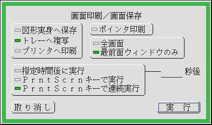 [Print Screen]キーを押すたびに保存先のディスクと実身名を指定するパネルが現れます。
