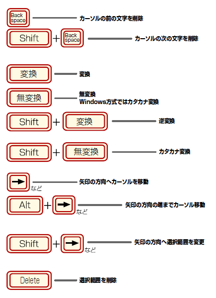 入力した文字を修正・編集するには、以下のキーを使用します。