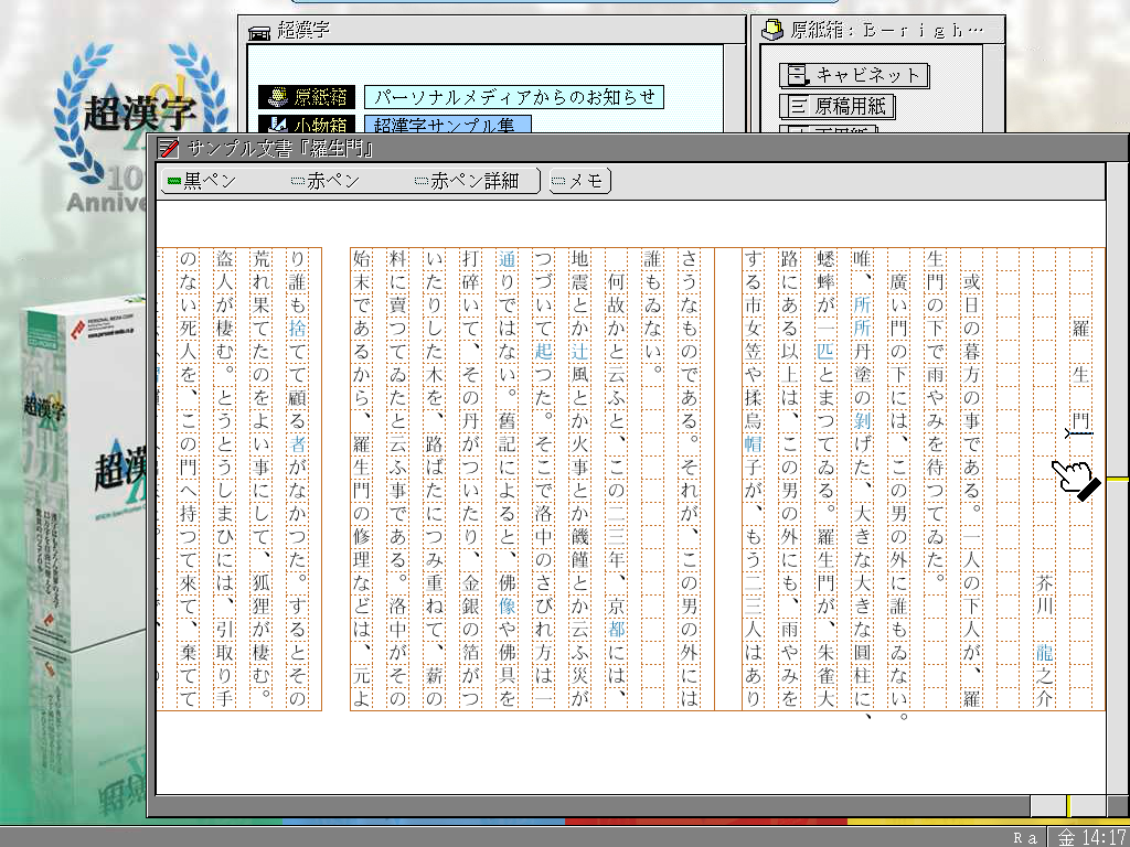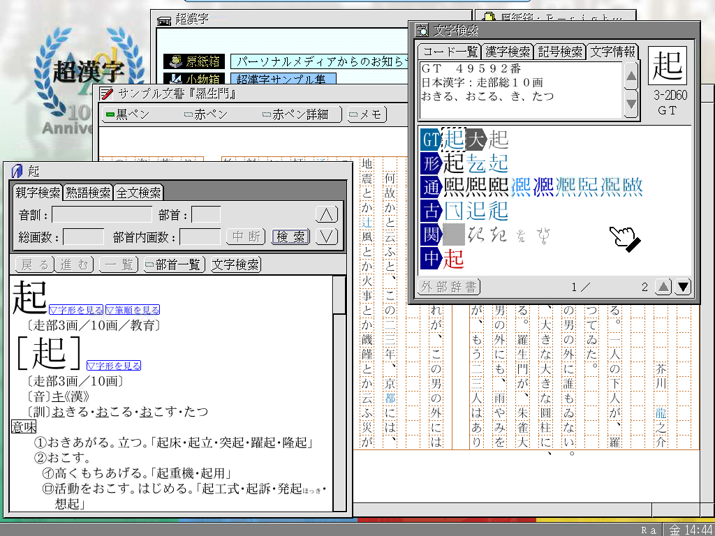 超漢字Vを起動し、システム環境設定小物で「画面サイズ/色数」を「1024×768:1677万色」に設定しておきます。