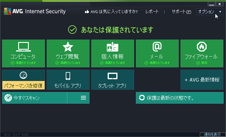 超漢字V:「AVG インターネットセキュリティ 2014」の設定