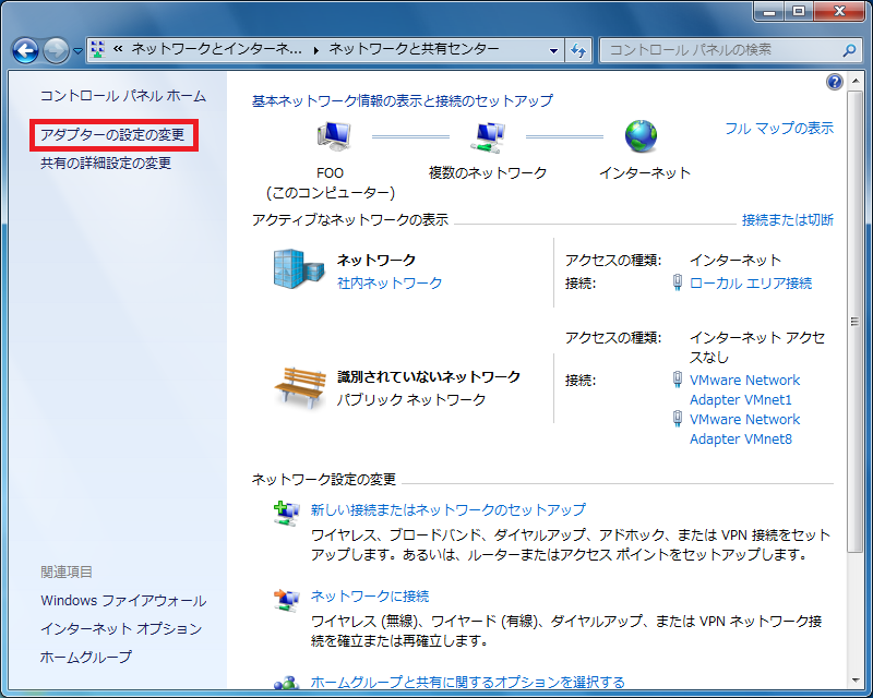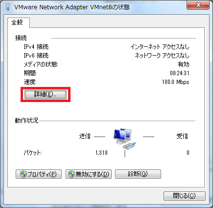 VMnet8 の IP アドレスの取得方法(Windows 7)