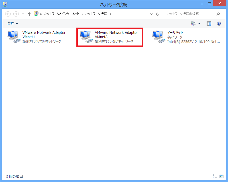- 「VMware Network Adapter VMnet8」と表示されるアイコンをダブルクリックします。