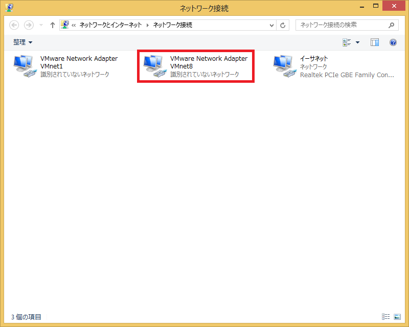 - 「VMware Network Adapter VMnet8」と表示されるアイコンをダブルクリックします。