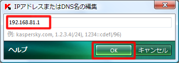 画面では例として「192.168.81.1」を入力していますが、実際には、お使いのPCのIPアドレスに変更して入力してください。