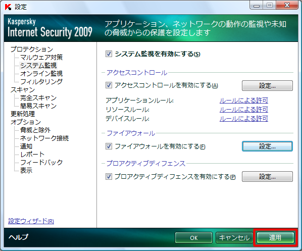 超漢字V:「カスペルスキー・インターネットセキュリティ 2009」の設定