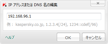 画面では例として「192.168.96.1」を入力していますが、実際には、お使いのPCのIPアドレスに変更して入力してください。
