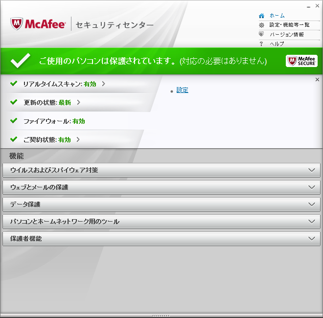 本文書は、マカフィーセキュリティ製品に搭載されている「セキュリティセンター」を利用している場合を前提としています。