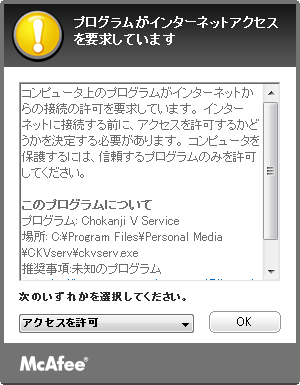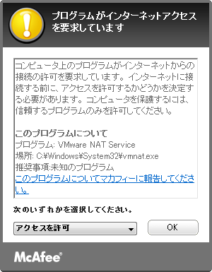 「マカフィー・パーソナルファイアウォール」からのメッセージへの対応