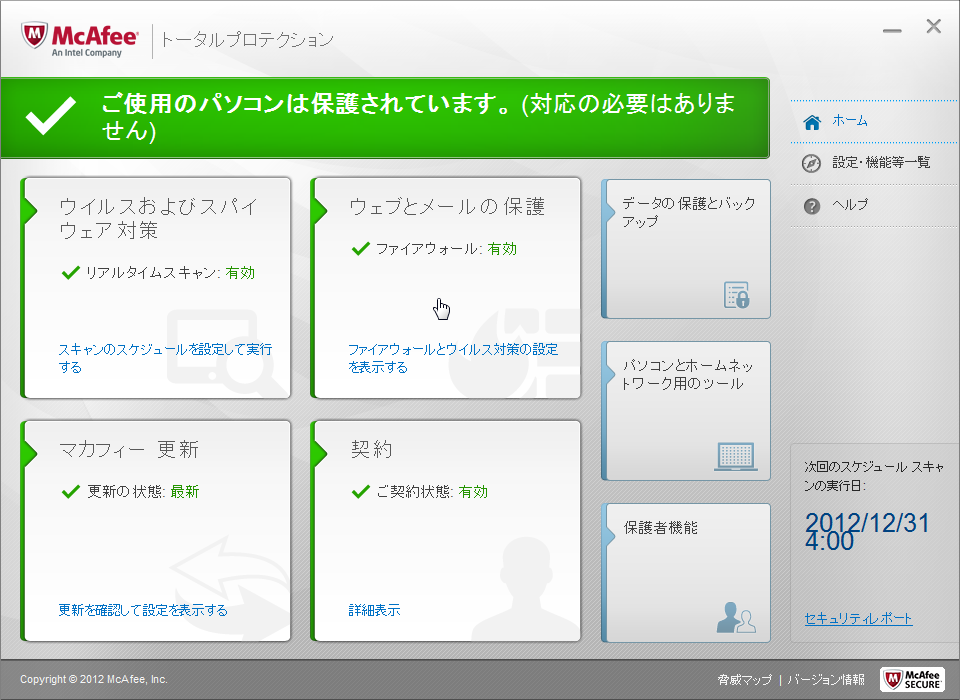 超漢字V:「マカフィー・トータルプロテクション 2013」の設定