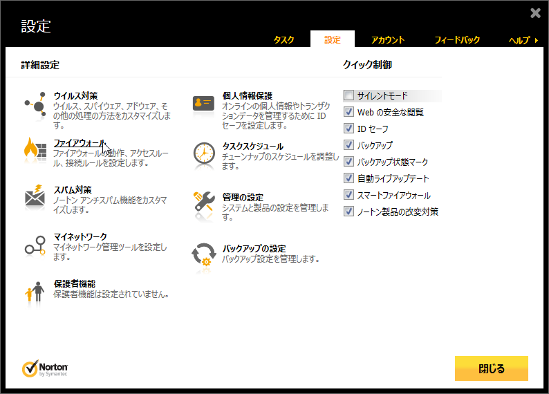 超漢字V:「ノートン 360 (2013年度版以降共通)」の設定