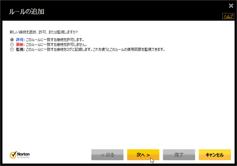 - 「許可」にチェックが付いていることを確認して、[次へ]をクリックします。
