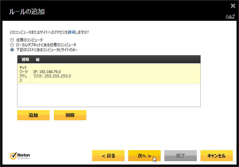- 「下記のリストにあるコンピュータとサイトのみ」にチェックを付けます。