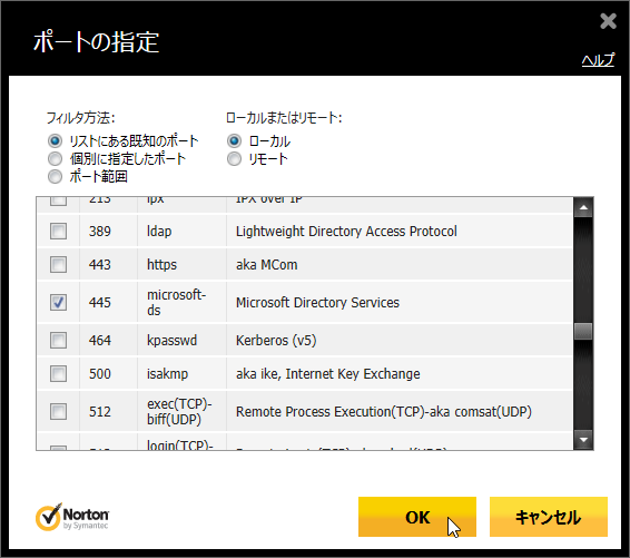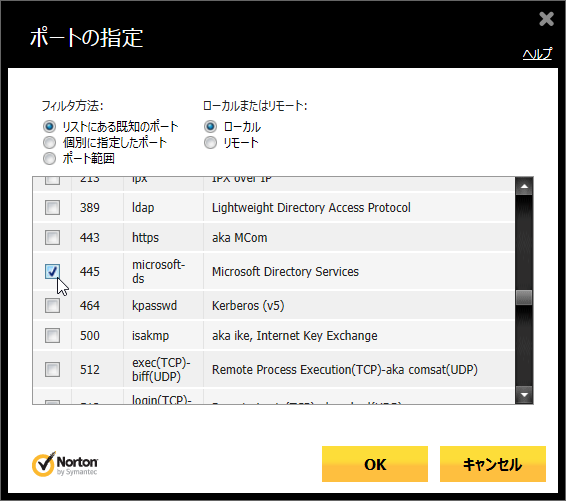 - ポートの一覧の中から「445」を探してチェックを付けます。