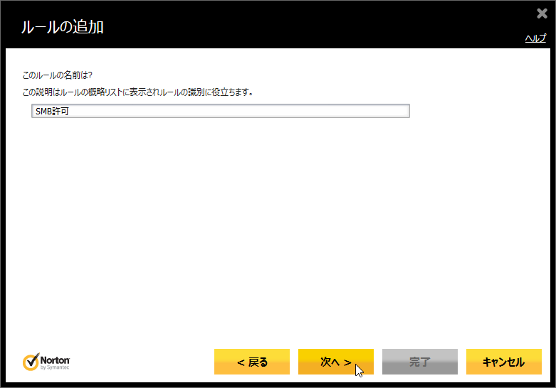 - 入力欄の文字列を「SMB許可」に書き換え、[次へ]をクリックします。