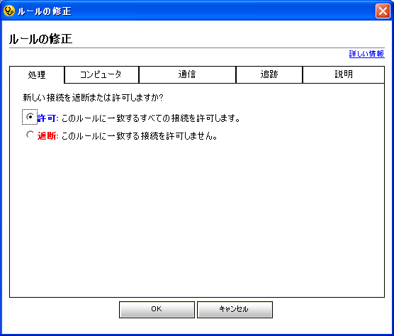 - 「ルールの修正」の「処理」の画面で、[遮断] から [許可] に変更します。