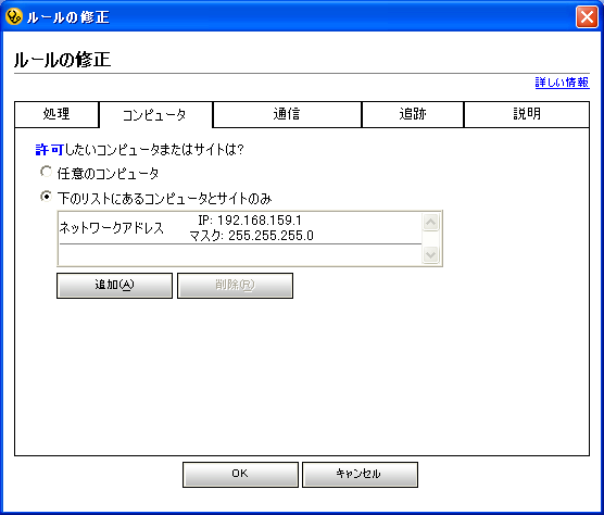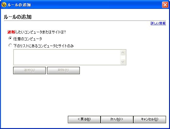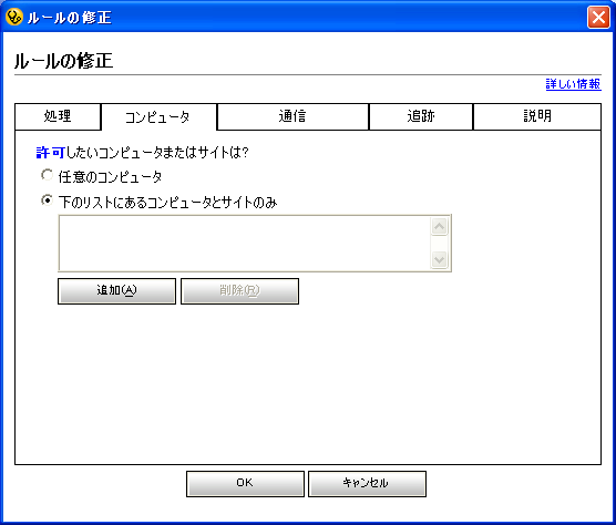 - [下のリストにあるコンピュータとサイトのみ] をクリックして、[追加] をクリックします。