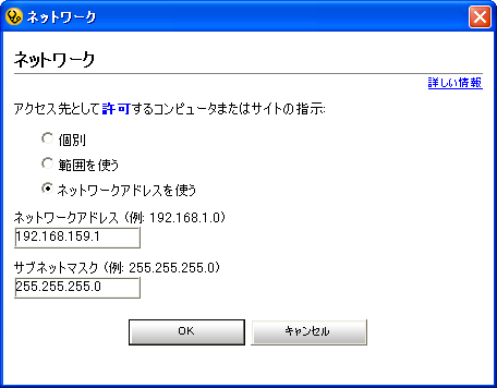 - 下の画面は「ネットワークアドレス」に「192.168.159.1」を入力した例です。