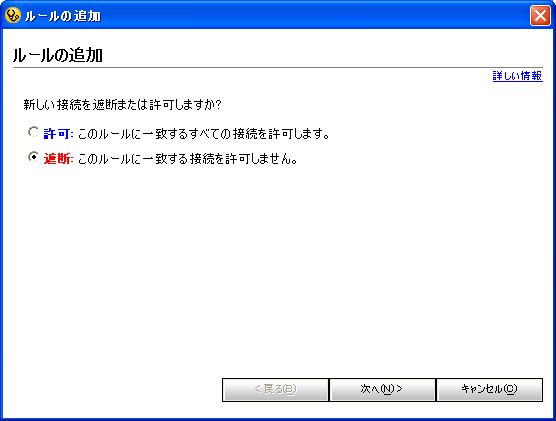 - [遮断] をクリックしてから [次へ] をクリックします。